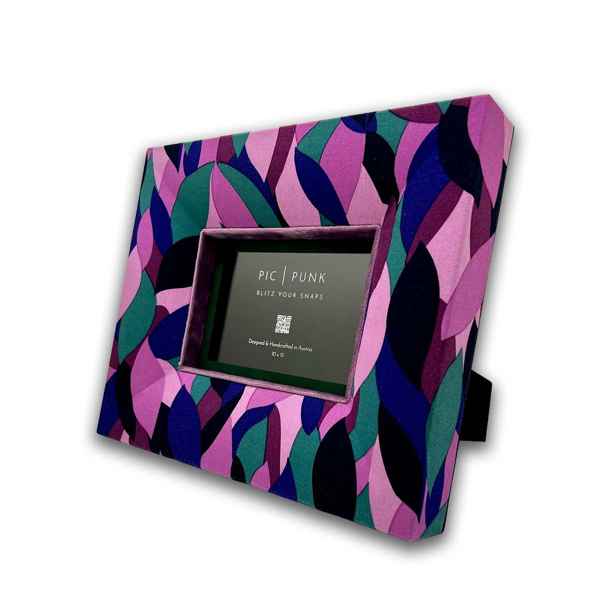 Poetisch, ausdrucksstark, elegant – bringt spielerische Akzente mit künstlerischer Note in dein Zuhause. Hochwertige Materialien und edles Design für ein exklusives Ambiente. Kristallklares Qualitätsglas schützt deine Fotos und lässt sie brillant erstrahlen. Die Rückwand mit edlem Samtfinish rundet das luxuriöse Gesamtbild ab und macht den Bohemian Dream Rahmen zu einem echten Design-Highlight. Stoffbezug: Grafisch gemusterter Twill in Rosa, Lila, Türkis & Schwarz Inlay & Passepartout: Flieder und Dunkelgrün, Samt Glas: Hochwertiges Bilderglas für brillante Farbtreue Rückseite: Stabiler Karton mit samtigem Finish – wahlweise mit edlem Metallscharnier-Aufsteller oder hochwertigen Klammern zum Hängen. Beide Varianten ermöglichen eine flexible Präsentation im Hoch- oder Querformat. Außenmaß: 29,2 × 24,2 × 4 cm Fotoformat: 15 x 10 cm Verpackung: Dein Rahmen wird liebevoll in Seidenpapier eingeschlagen, begleitet von einer stilvollen Karte und in einer eleganten schwarzen Box mit feinem Punk-Design geliefert. Hinweis: Farben können je nach Bildschirmdarstellung leicht vom Original abweichen.