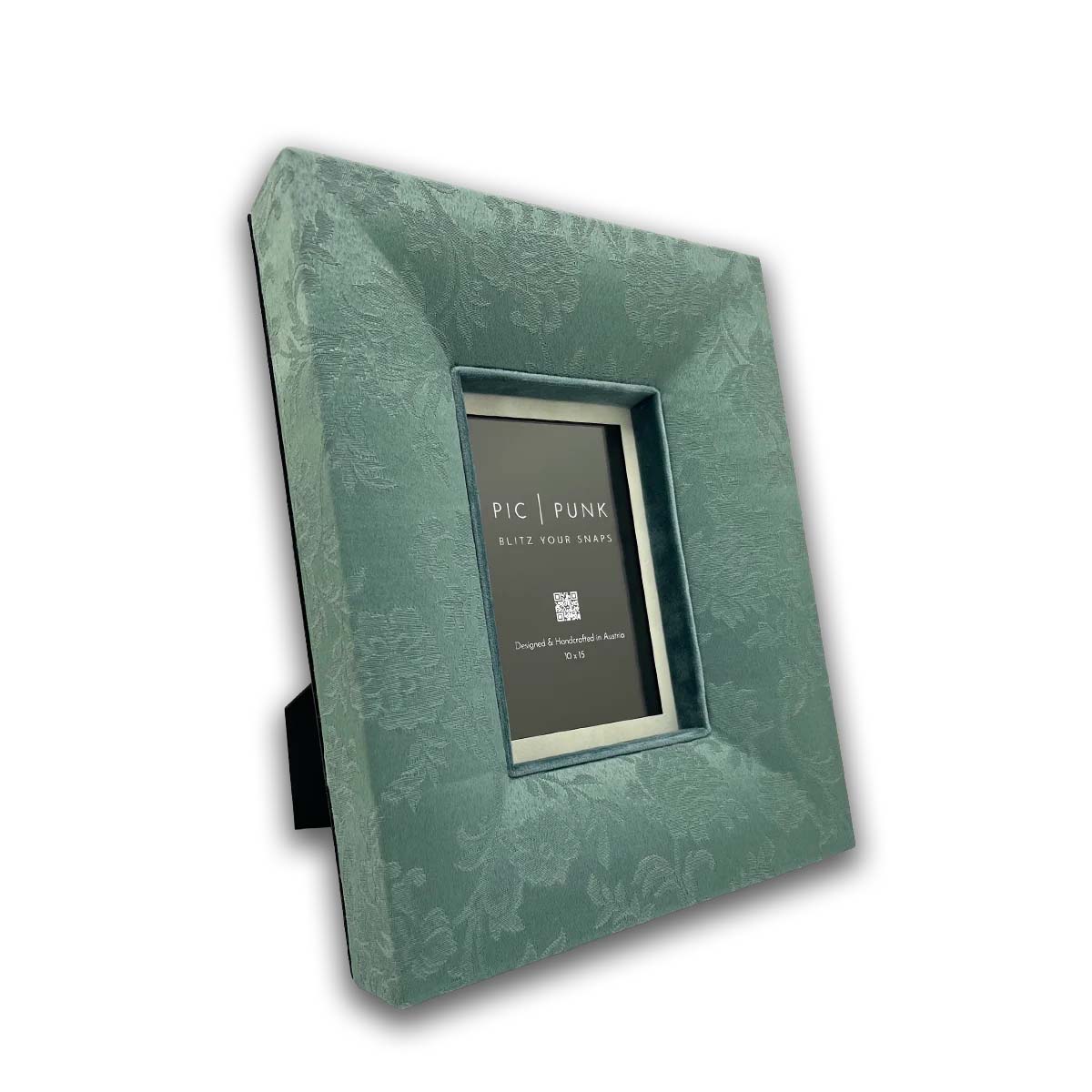 Downtown Essence – ein Rahmen, der urbane Eleganz neu interpretiert: tiefes Jadegrün, edle Jacquard-Textur und ein Design, das mühelos zwischen Loft-Coolness, City-Chic und alpinem Charme pendelt.