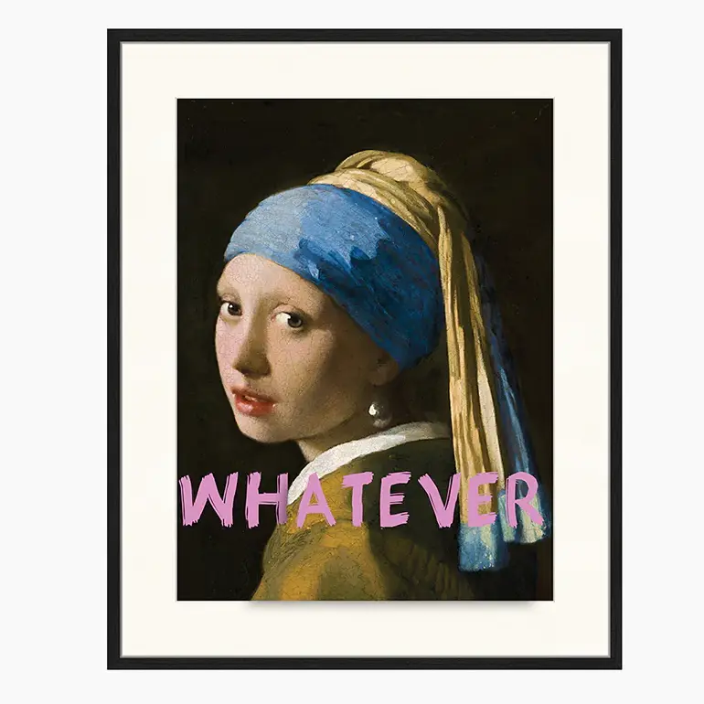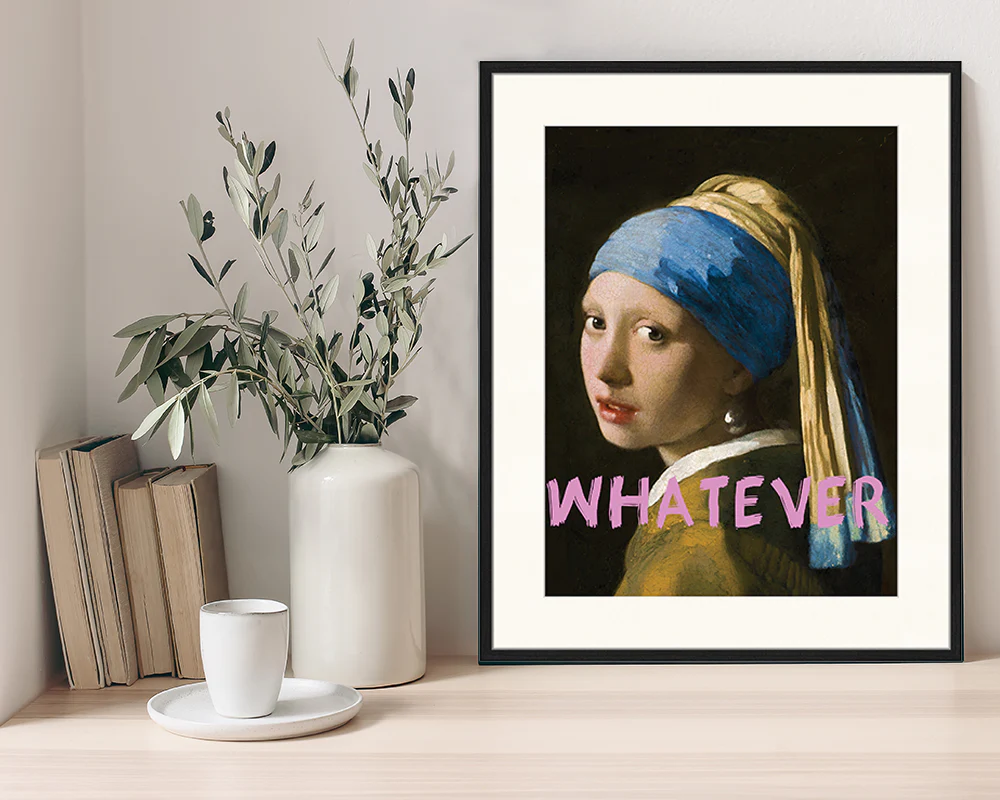Dieser hochwertige Digitaldruck verbindet zeitlose Kunst mit einem selbstbewussten Twist. Das berühmte Porträt wird durch den kontrastierenden WHATEVER Schriftzug neu interpretiert und erhält eine überraschend moderne, fast rebellische Note. Das Zusammenspiel aus klassischer Ästhetik und urbanem Statement macht dieses Motiv zu einem echten Blickfang. Perfekt für alle, die Tradition nicht zu ernst nehmen und ihrem Raum Persönlichkeit verleihen wollen.