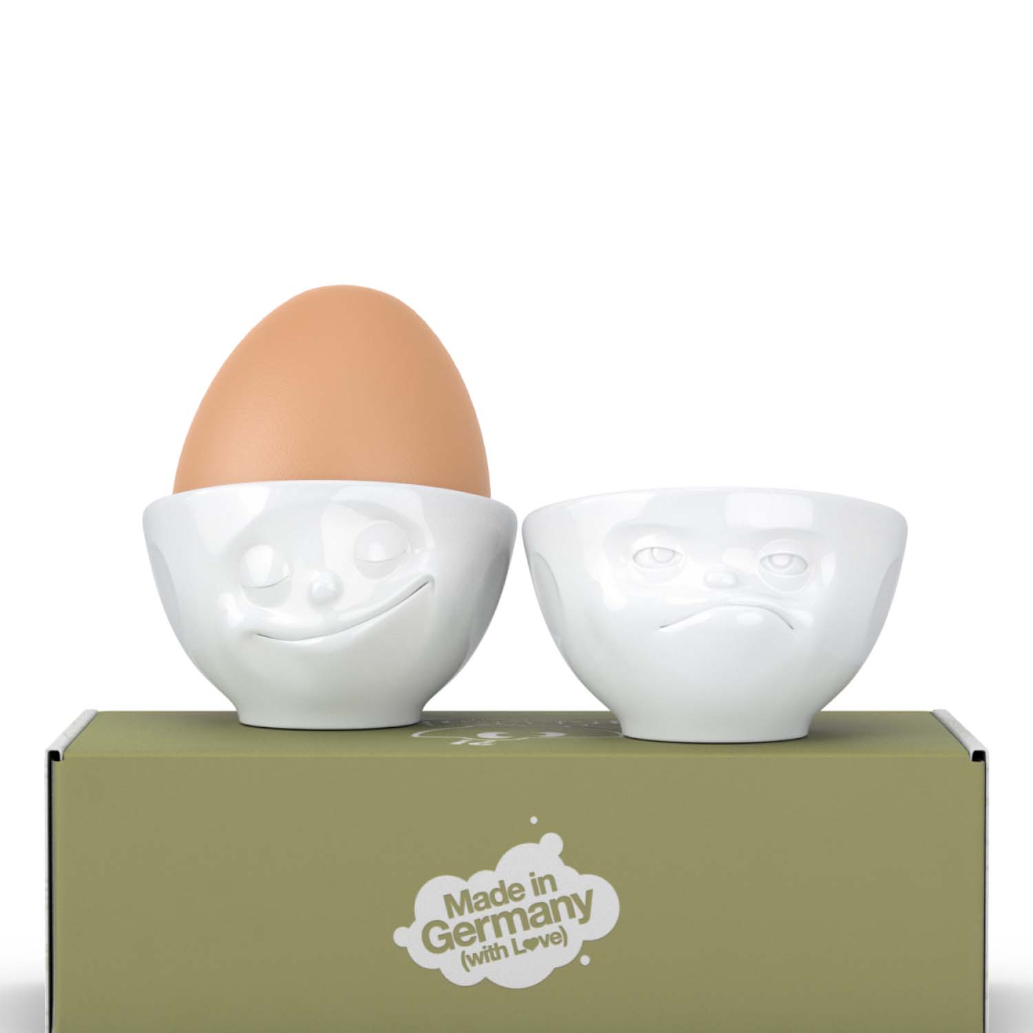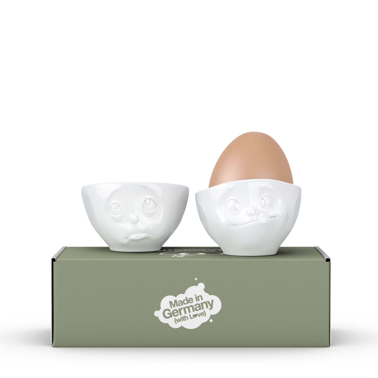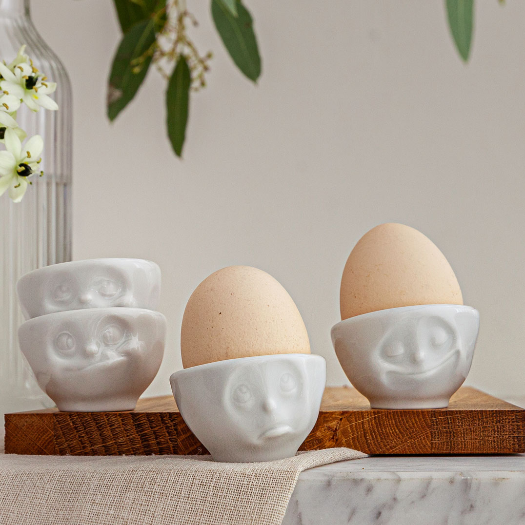 Das Eierbecher-Set in weiß eignet sich nicht nur für Frühstückseier, sondern auch als kleine Schälchen für alles, was auf dem Tisch griffbereit sein soll – von Gewürzen und Kräutern bis hin zu Wasabi oder sogar einer kleinen Portion Eis. Das Eierbecher Set ist in verschiedenen lustigen Motiven erhältlich!