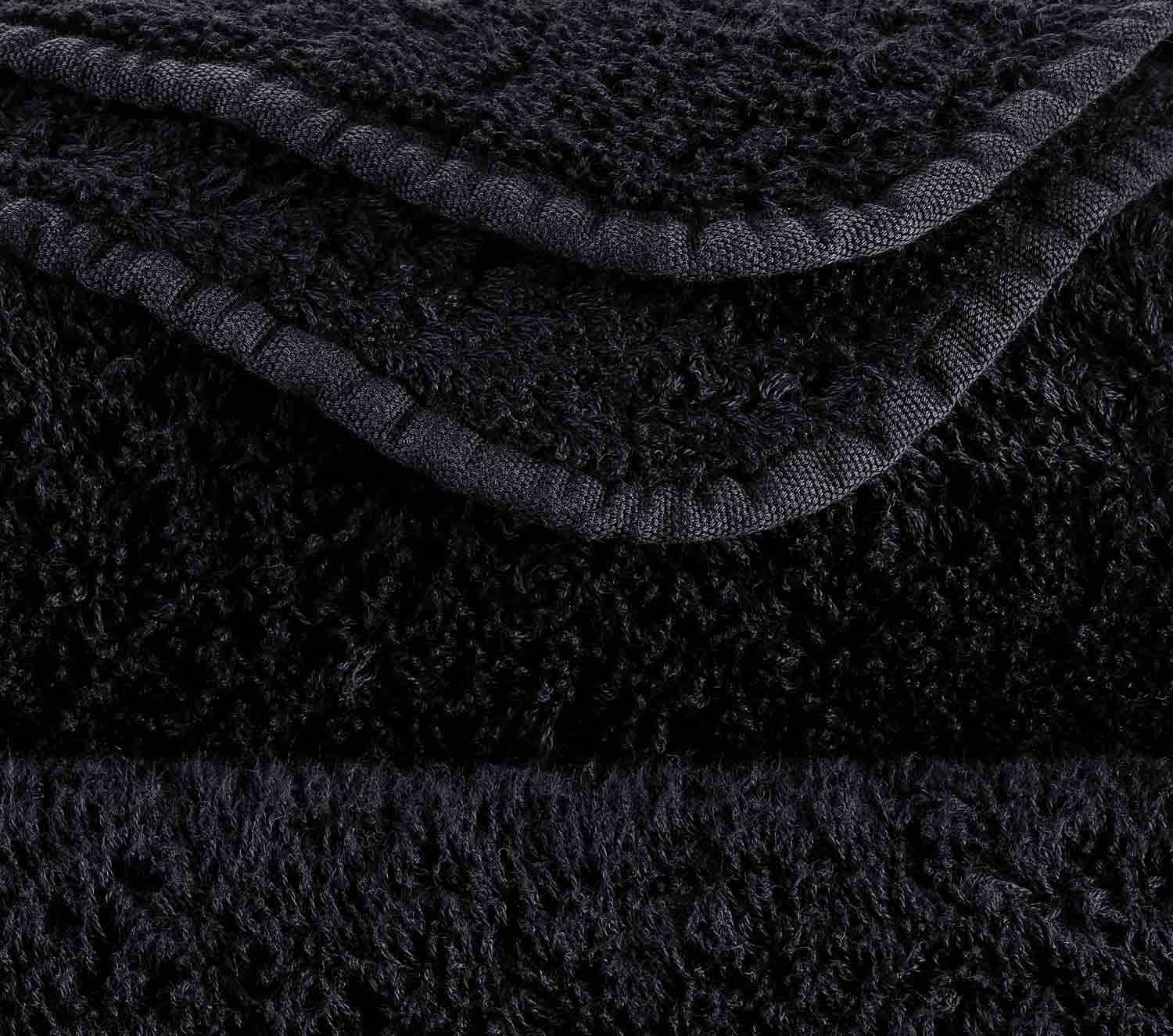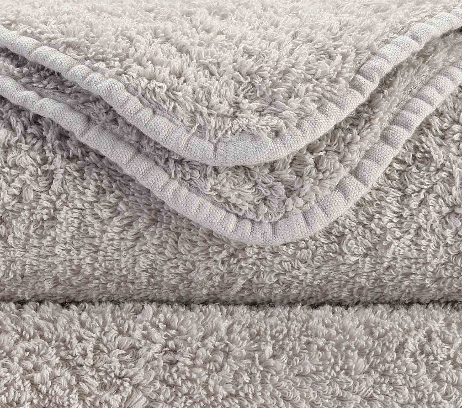Mit einem Gewicht von 700 g/m² fühlen sich die Tücher besonders flauschig und dicht an. Das Schrägband mit abgerundeten Ecken sorgt für ein elegantes Aussehen und hohe Formstabilität.
