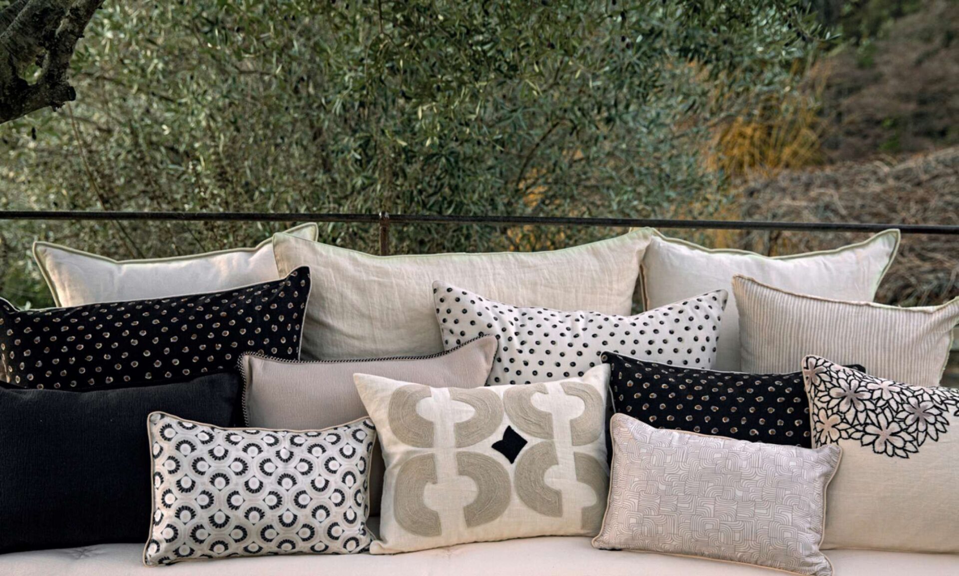Unsere Kissenbezüge entstehen in einer kunsthandwerklichen Werkstatt. Dort werden traditionelle Techniken wie Färbung, Druck und Stickerei mit großer Sorgfalt gepflegt. Das Modell Bahia ist mit steinwaschgewaschenem Baumwoll-Voile gefüttert. Ein unsichtbarer Verschluss sorgt für eine elegante Optik.