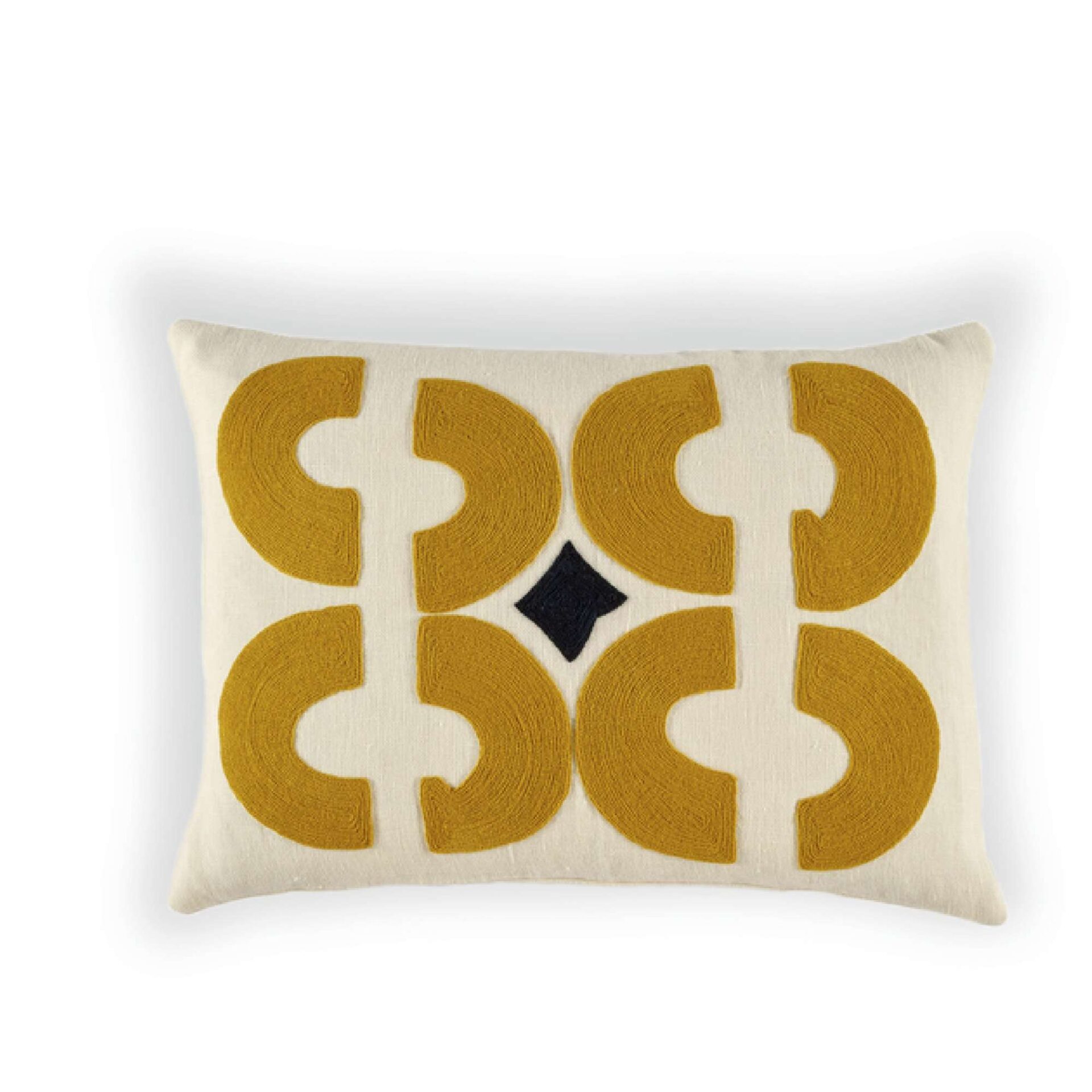 Dieser wunderschöne Kissenbezug aus Leinen überzeugt durch vier große, kreisförmige Stickmotive im Kettenstich. Sie verleihen dem naturfarbenen Stoff ein handwerklich inspiriertes Design. Die Rückseite besteht aus weichem, vorgewaschenem Leinen in schlichter Ausführung.