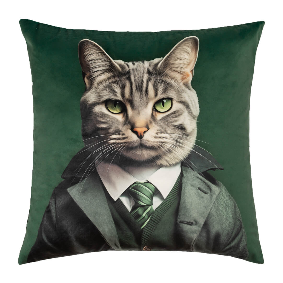 Die Kissenhülle Tigrou setzt die neugierige Katze im frischen Green-Look perfekt in Szene – mit ihren strahlend grünen Augen als echter Blickfang. Verspieltes Design trifft auf hochwertige Materialien und feine Verarbeitung – ideal für Katzenliebhaber und alle, die ihrem Zuhause einen frechen Akzent verleihen möchten.