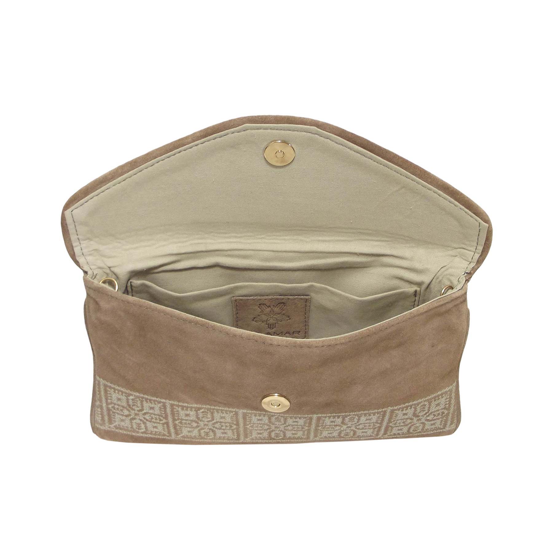 Die Lederclutch Salzburg ist das perfekte Accessoire, um Ihrem Outfit das gewisse Etwas zu verleihen. Diese dezente Umschlagtasche ist ein echtes Multitalent, das Sie mühelos vom Tageslook zum Abend-Chic begleitet. Gefertigt aus weichem, beigem Veloursleder, besticht die Clutch durch ihre hochwertige Haptik und ihr zeitloses Design. Im Inneren sorgt ein robustes Textilfutter für Langlebigkeit. Im gefütterten Innenleben finden Sie neben dem Hauptfach auch ein praktisches Steckfach, ideal für kleinere Utensilien.
