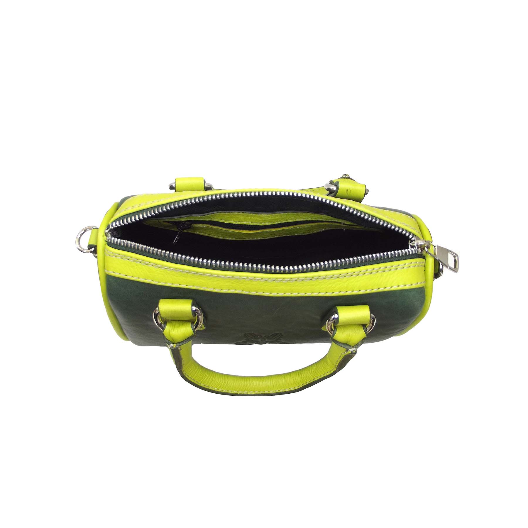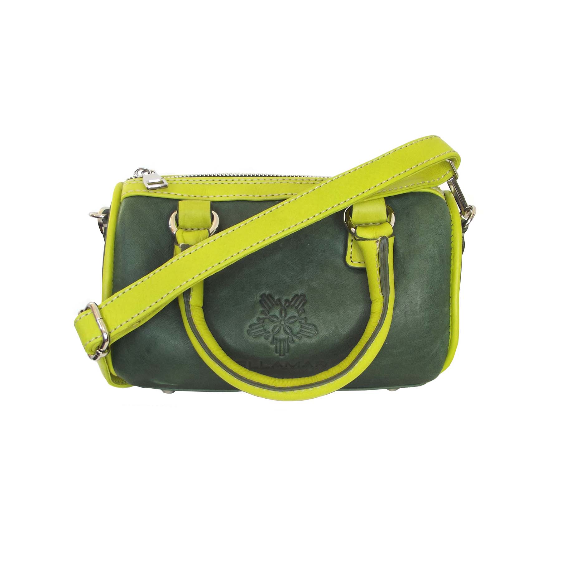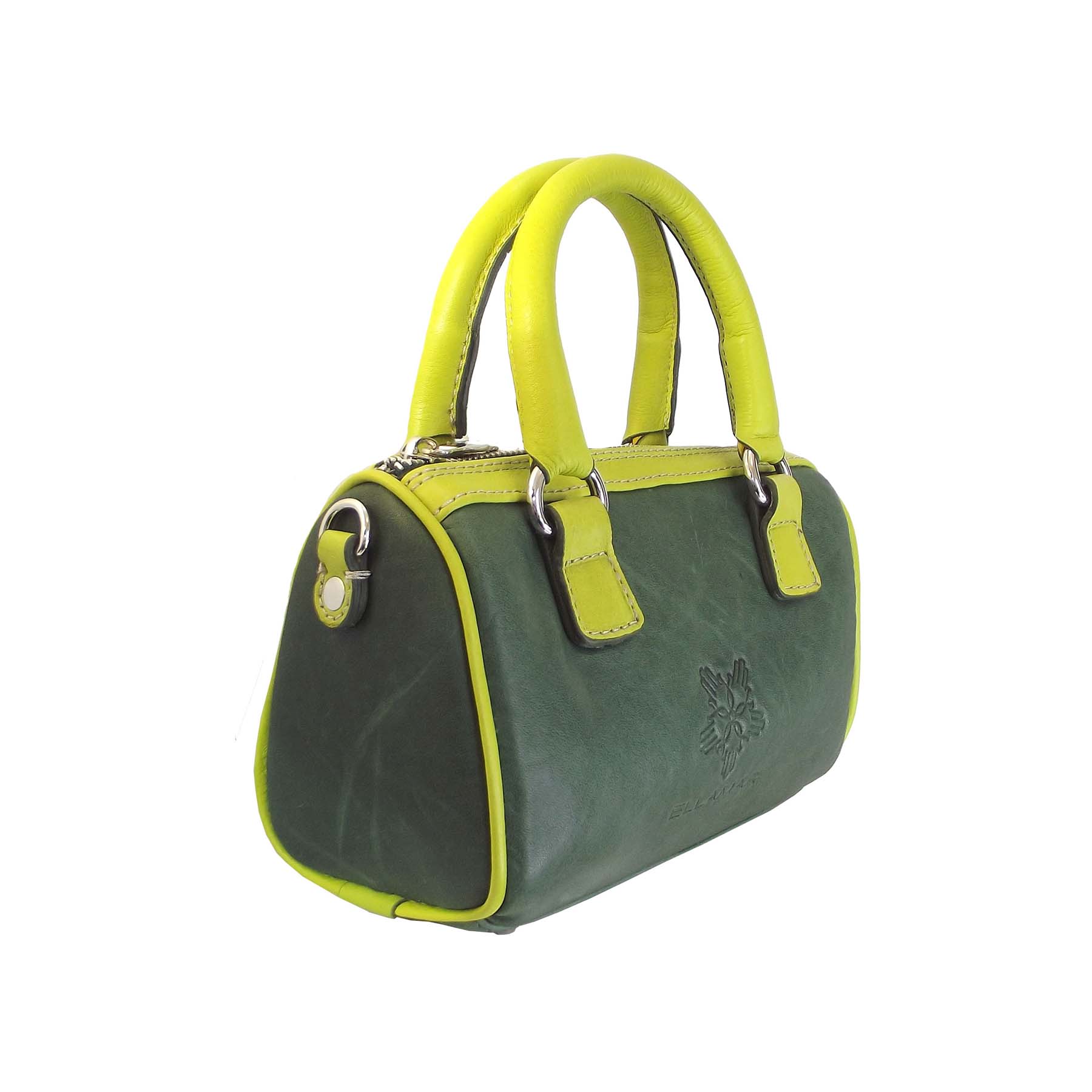 Mini Bag aus pflanzlich gegerbtem Rindsleder in Grün. Hochwertig verarbeitet mit Reißverschluss, Stofffutter, Innenfach mit Zipper, Tragegriffen und abnehmbarem Schulterriemen aus Leder. Made in Europe.